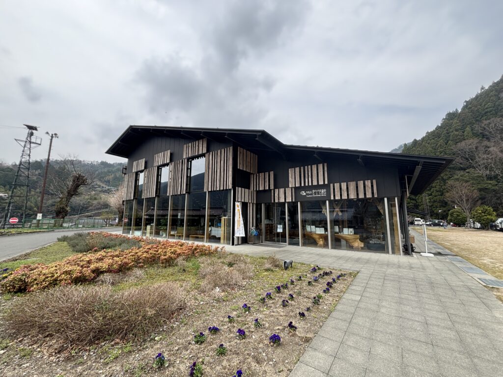 宿泊施設と道の駅が一体になった複合施設。こちらも隈研吾設計で、木の温もりを感じる空間でした。お土産コーナーもあって梼原の特産品がそろっています。