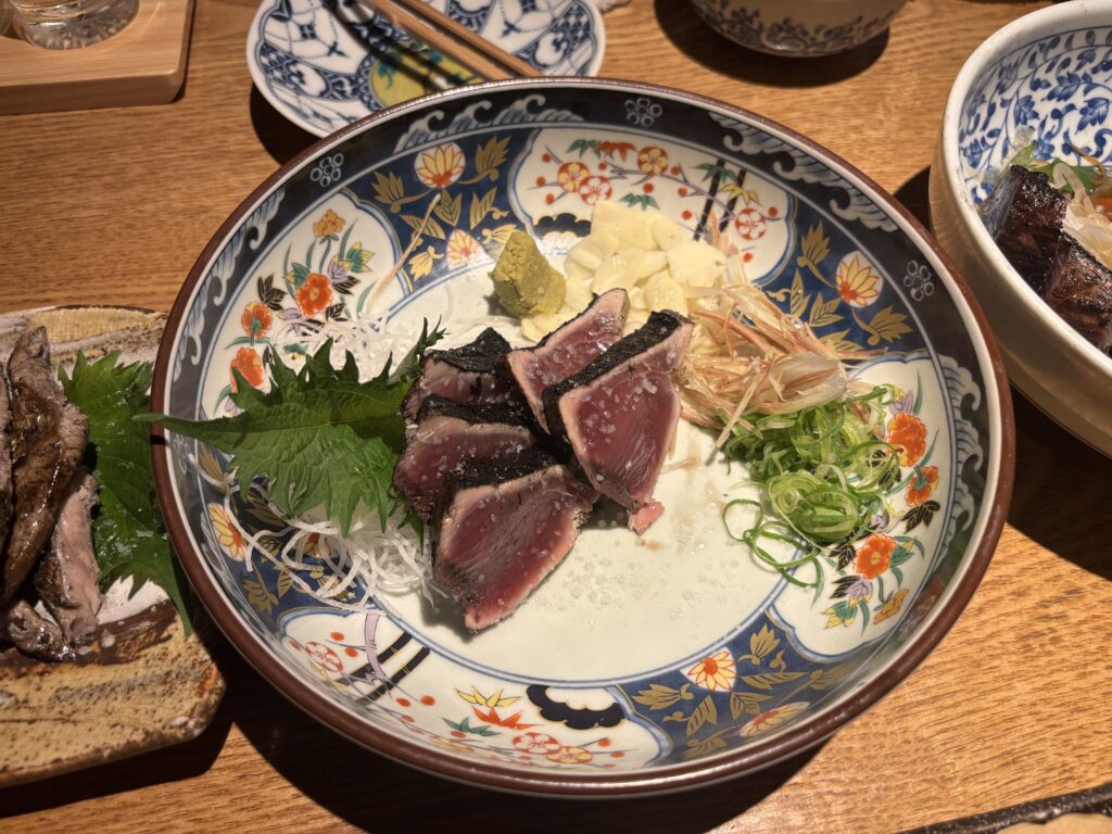 肝心のお味は、藁焼きならではの香ばしい香りと、カツオの旨味が最高のマリアージュ。高知に来たらカツオの藁焼きは絶対に外せないと確信しました。塩とタレどちらで食べても美味しかったですが、個人的には塩派です。